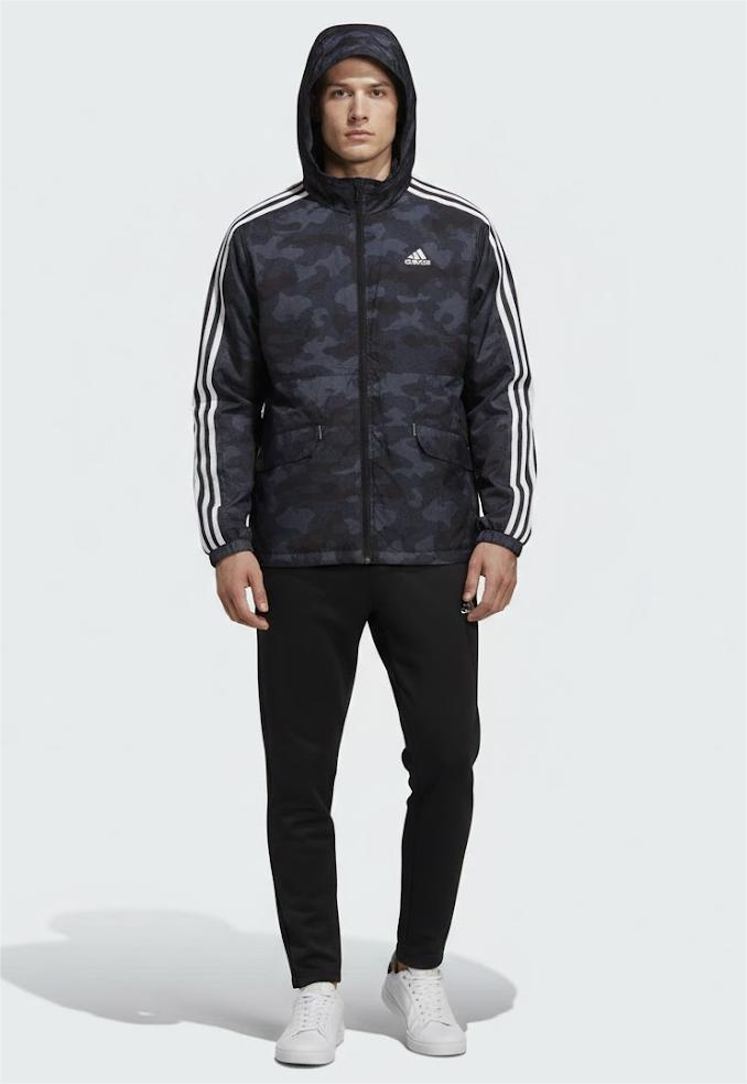 Warna aman pekat Bahan utama parasut waterproof, bahan dalam flecee lembut hidden hoodie logo adidas bordir